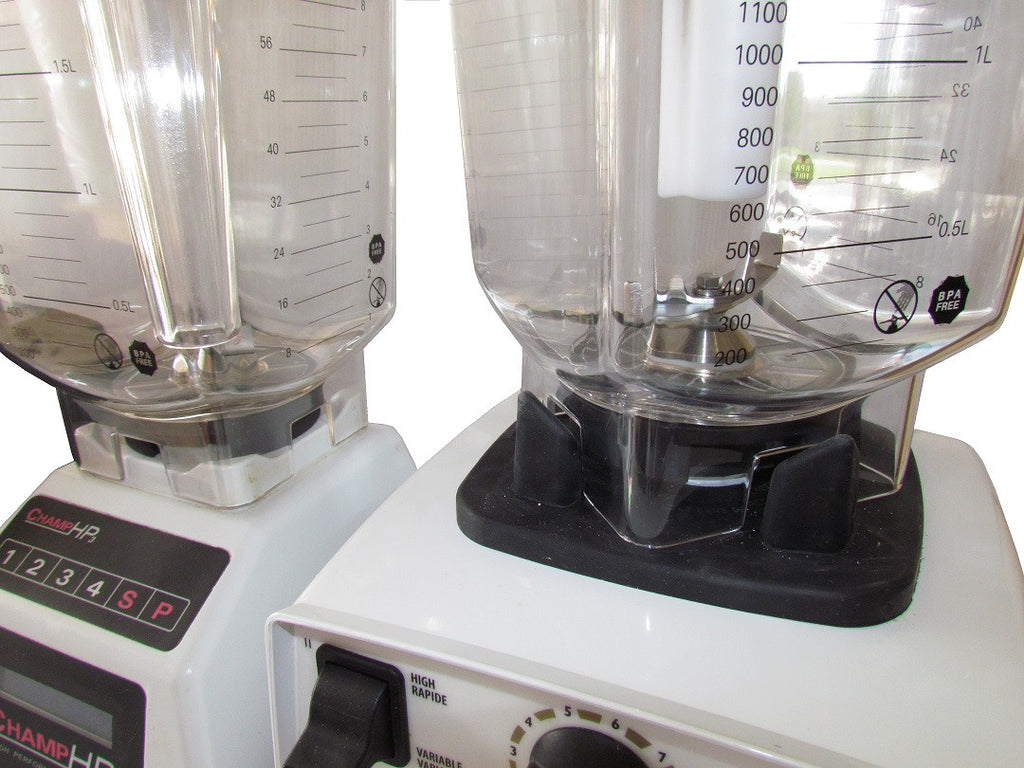 ingredients for actual effective blending. The blade is exchangeable / replaceable. The sharpened Alterna(TM) blades (4 knives) work great for grain, dry, wet, and ice / frozen ingredients and especially great blending up seeds like raspberry blackberry or strawberry seeds. You can make your hot soup too, or ice cream, and nut butters. The container bottom is specifically engineered for improved blend performance and easy cleaning. The jar comes with a food grade rubber lid that has a (FLAP) cap lid attached so you don't lose it or even blend it up. Tamper not included.